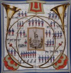 Foulard carré de soie : Sonneurs de trompe par F. de La Perrière Silk scarf squarre : Sonneurs de trompe by F. de La Perrière